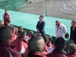 常総学院高等学校のグラウンドへ激励
