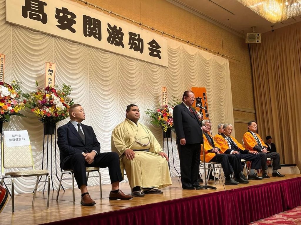 大相撲の高安関の土浦後援会の激励会に出席しました。地元土浦市出身の高安関の激励に多くの皆様がご参加をいただき盛大に開催されました。久しぶりにお会いしましたがお元気で気力は充実しているようでした。ケガを早く治していただき、ますますのご活躍を心からご祈念申し上げます。