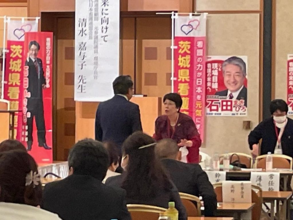茨城県看護連盟の通常総会に出席しました。日頃、皆様には県民の命と健康を守るためご尽力をいただき、ありがとうございます。特にこの3年はコロナ禍でたいへんなご苦労があったと思います。心から敬意と感謝を申し上げます。連盟のさらなる発展と皆様のご多幸とご健勝でのご活躍を心からご祈念申し上げます。