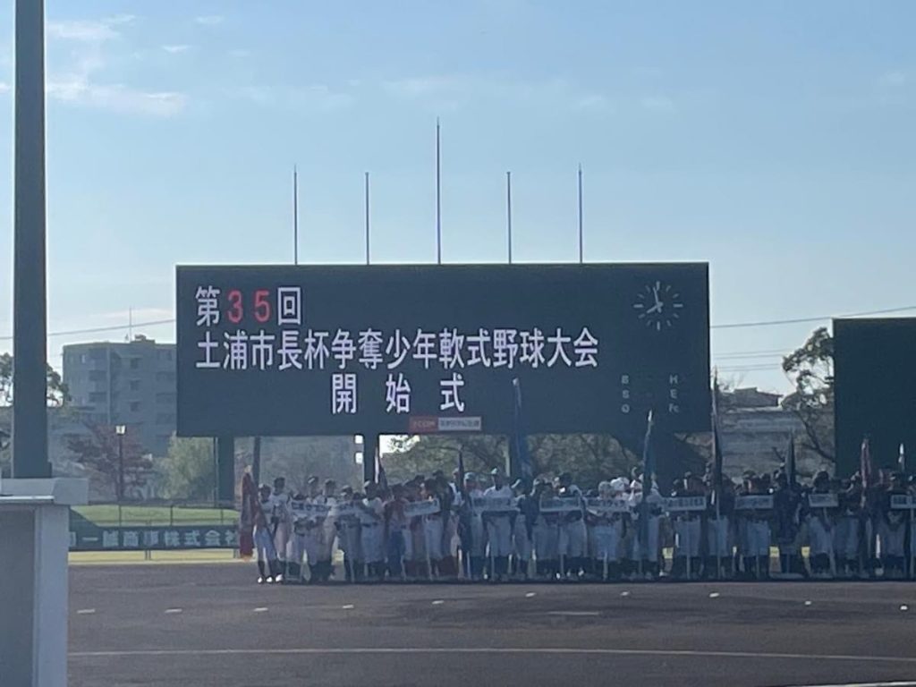 第35回土浦市長杯争奪少年軟式野球大会の開会式に土浦市野球連盟会長として参加しました。晴天の下盛大に開催され、今年も多くの子ども達に参加いただきました。子ども達には野球を通じて多くを学び心も体も健やかに育ってほしいと思います。