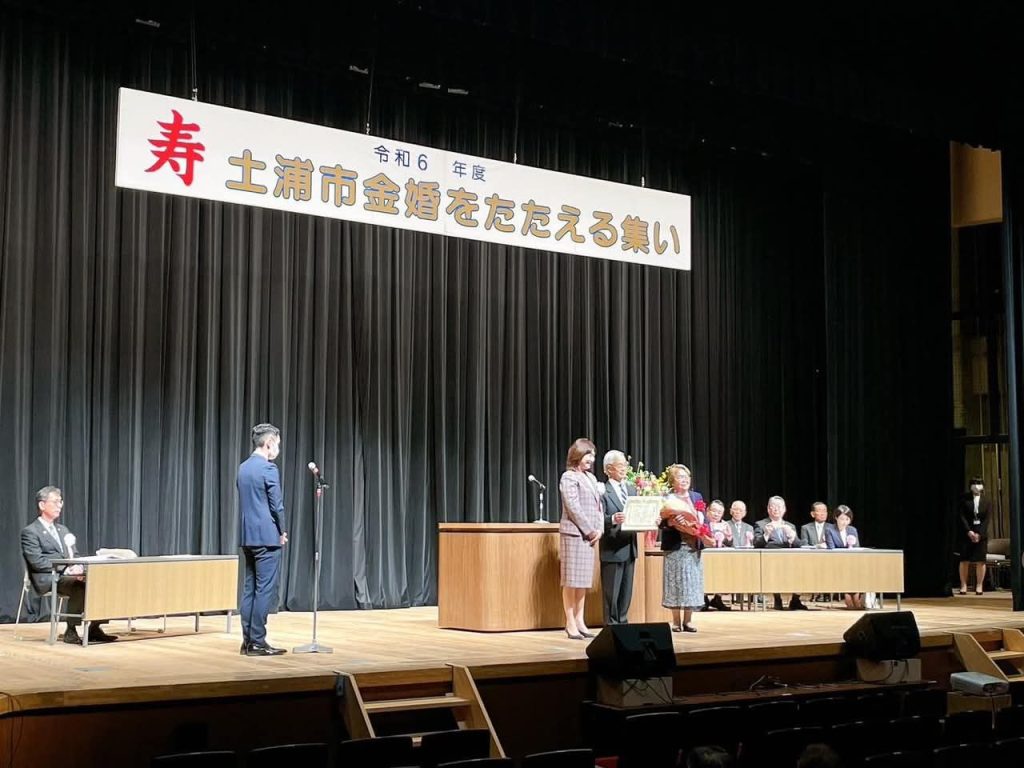 地元の「土浦市金婚をたたえる集い」に出席しました。結婚50周年、嬉しいこと、楽しいこと、時にはご苦労もあったと思います。お2人ともお元気で金婚式を迎えたことたいへん嬉しく思います。これからもお元気で末永くお幸せであることを心からご祈念申し上げます。皆様おめでとうございます。