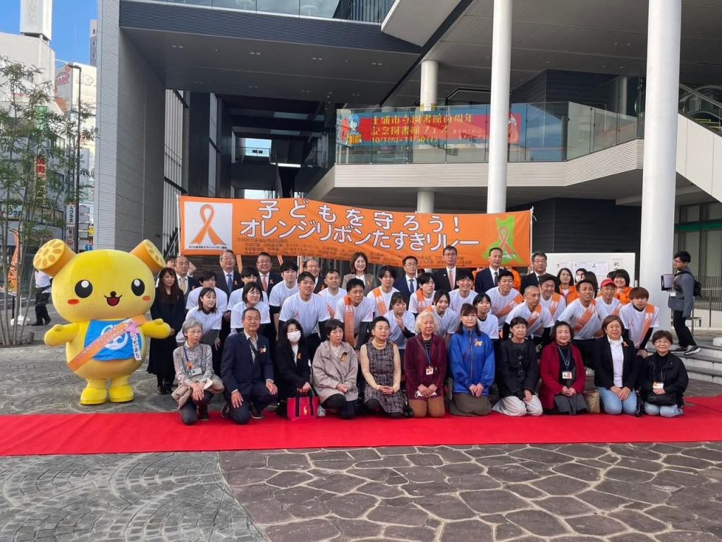 「オレンジリボンたすきリレー」の出発式に参加しました。子どもを守る啓発活動の一環として土浦駅前から水戸市の茨城県庁まで児童養護施設の職員さんや児童相談所の職員さん等がたすきをつないで走ります。地域の宝、国の宝である子ども達をしっかりと守り育てられる社会づくりに今後も積極的に取り組んでいきたいと思います。