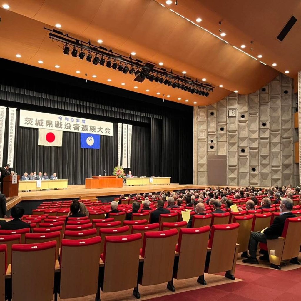 茨城県戦没者遺族大会に出席しました。戦後79年が過ぎ、ご遺族も高齢化が進んでいますが、今年も多くの皆様がご出席のもと盛大に開催されました。あらためて先の大戦でお亡くなりのなられた御霊のご冥福とご遺族の皆様のご健勝とご多幸を心からご祈念申し上げます。