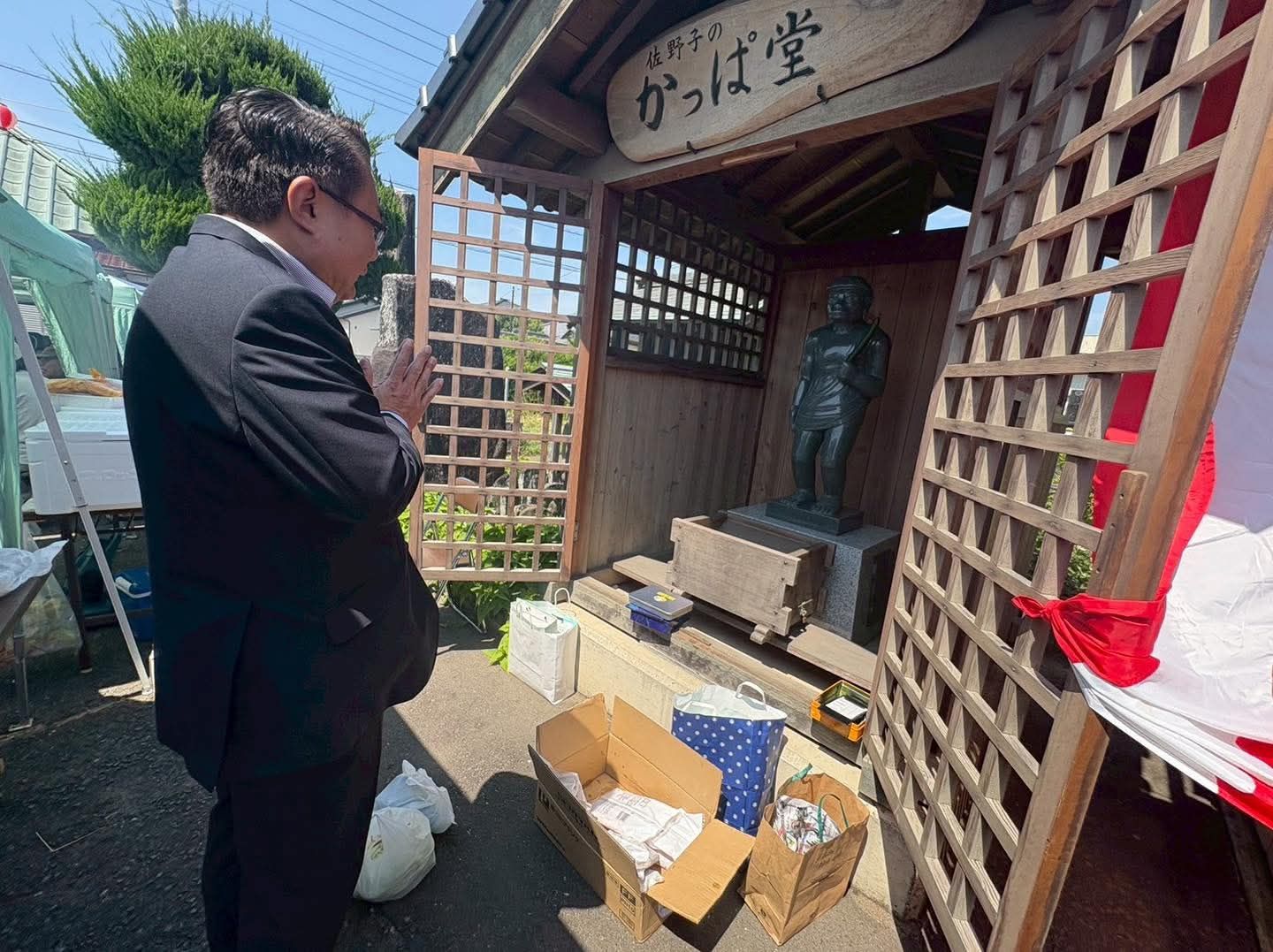 地元の「かっぱまつり」に行きました。残念ながら休日議会があり本会議が開かれた為、少しの時間でしたが挨拶にうかがいました。佐野子地区には「かっぱ伝説」があり毎年祈願をしてから町の活性化や交流イベントとして開催され盛り上がっております。
